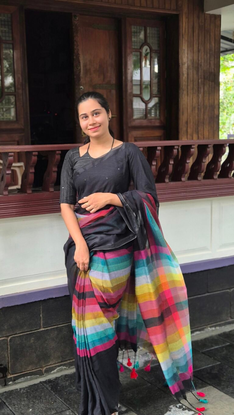 Black Multi colored – Mul cotton Saree