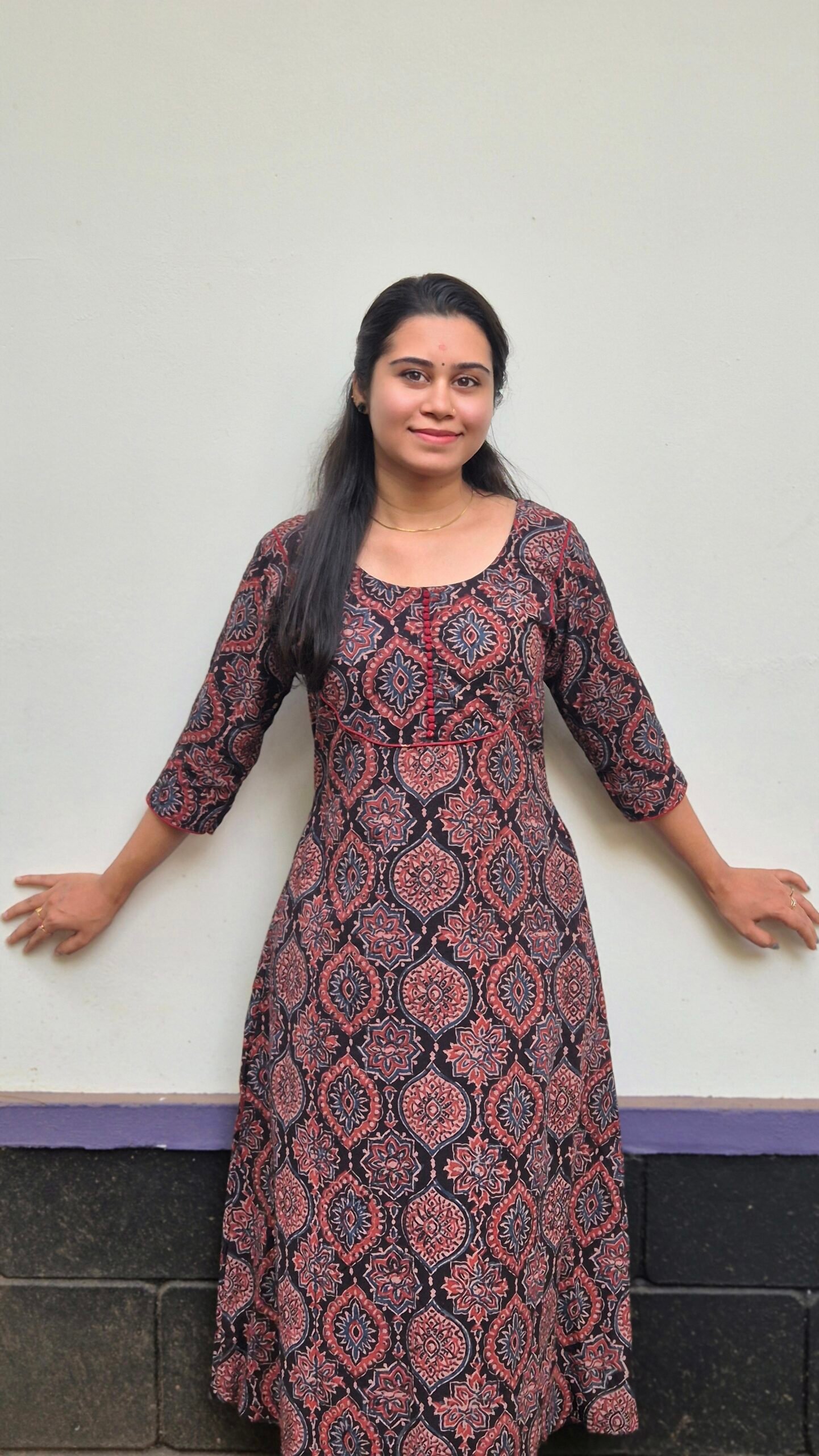 Ajrakh Hand block Printed Cotton A-Line Kurta.