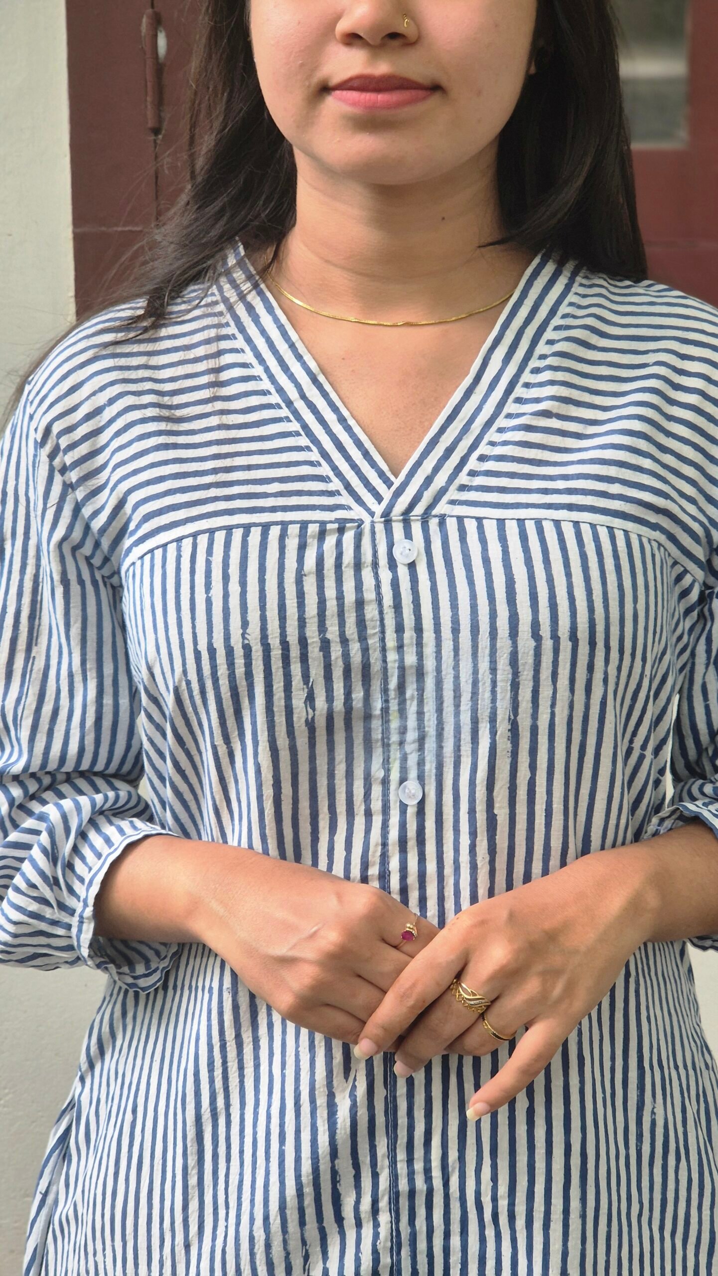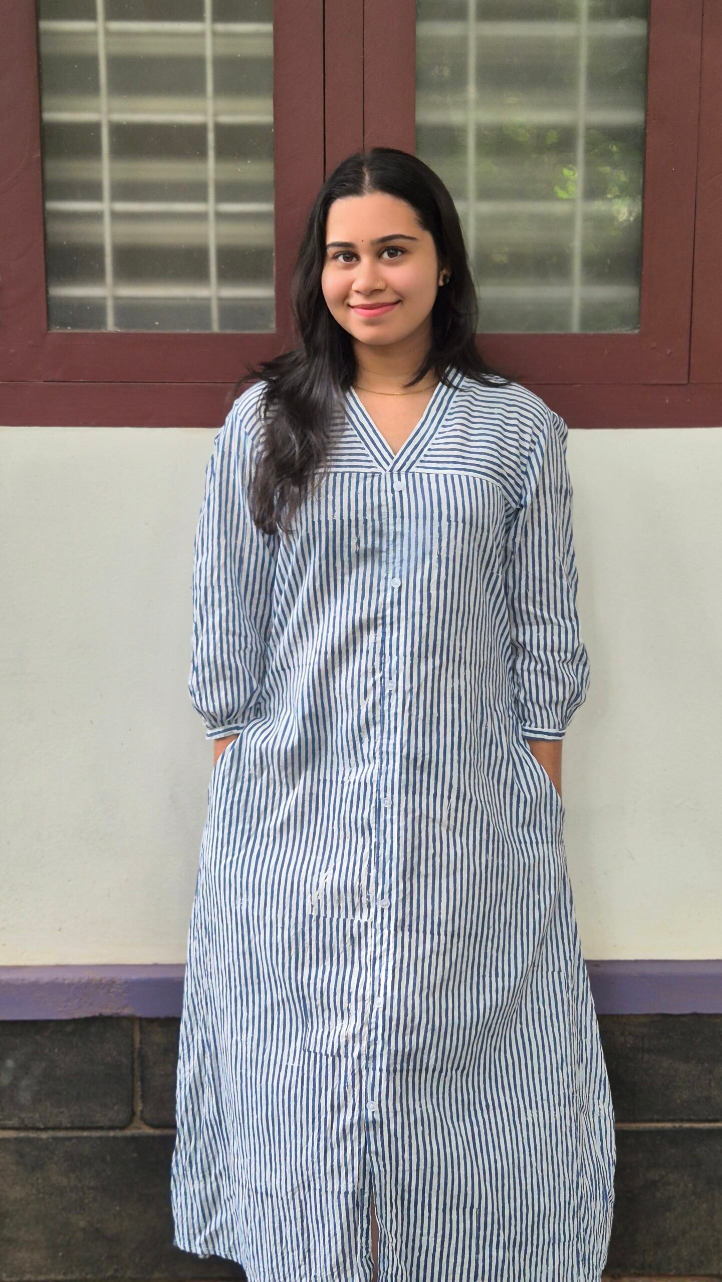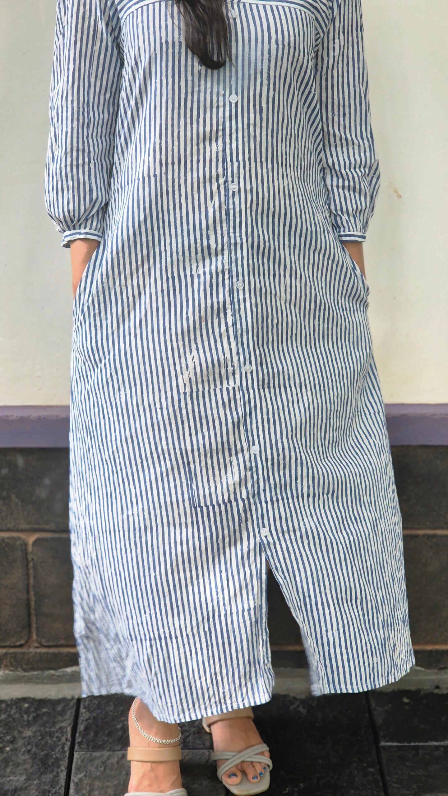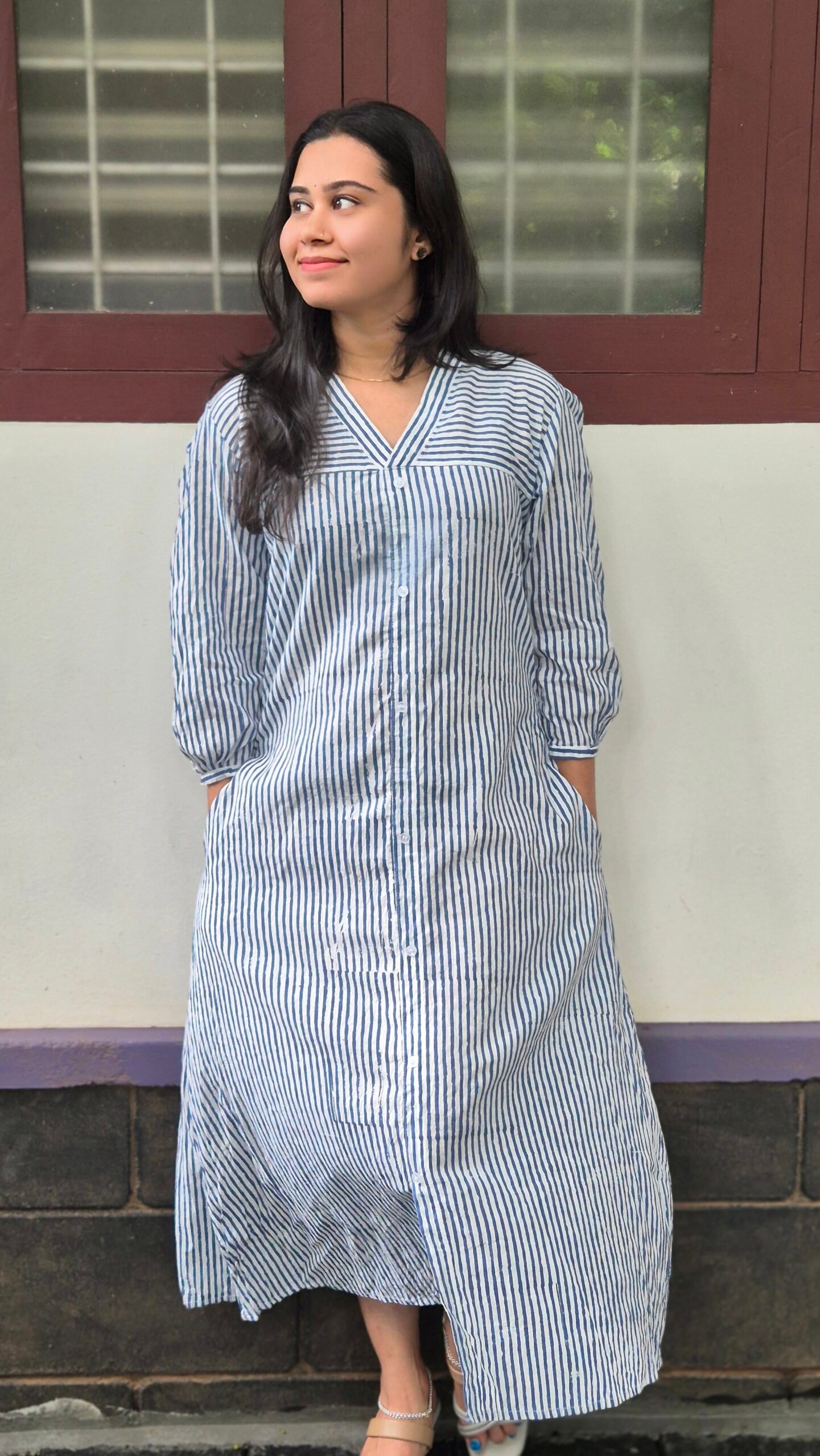Home Kurties Blue Stripes – Cotton Hand block printed dress