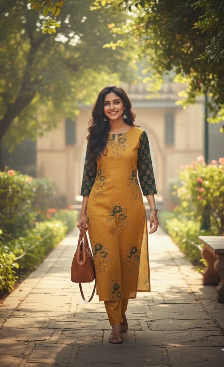 • Colour: Yellow with green sleeve| Craft: Ajrakh